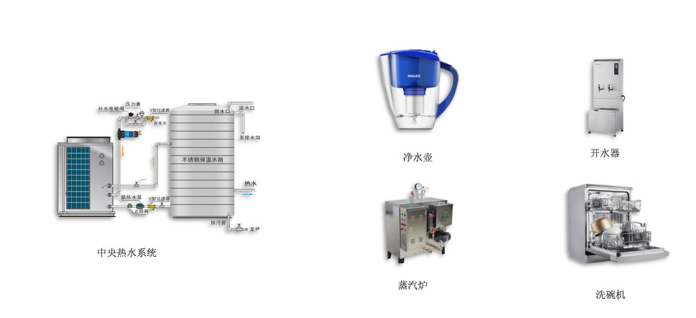 家用熱水系統(tǒng)包含電熱水器、太陽 能熱水器、燃氣熱水器、空氣能熱水器等,在水質(zhì)較硬(鈣硬度>100ppm)的地區(qū) 使用時,熱水器內(nèi)部加熱管、太陽能真空 管、換熱系統(tǒng)以及貯水箱內(nèi)會逐漸出現(xiàn)大量的水垢附著,其中加熱管壁、太陽能真空管壁、換熱系統(tǒng)上有水垢附著后會 使熱轉(zhuǎn) 換效率降低,用電功耗、能耗會增加。據(jù)試驗測試,加熱管壁、太陽能真空管壁如果水垢附著厚度增加至1毫米時,能耗增加 10%;水垢厚度增加至2毫米后,能耗將會增加30%以上,而較硬水質(zhì)地區(qū) 使用時,達到這一厚度只需要兩個月左右的時間。而 對于換熱系統(tǒng)如果有水垢附著則換熱損失增加會更加明顯。